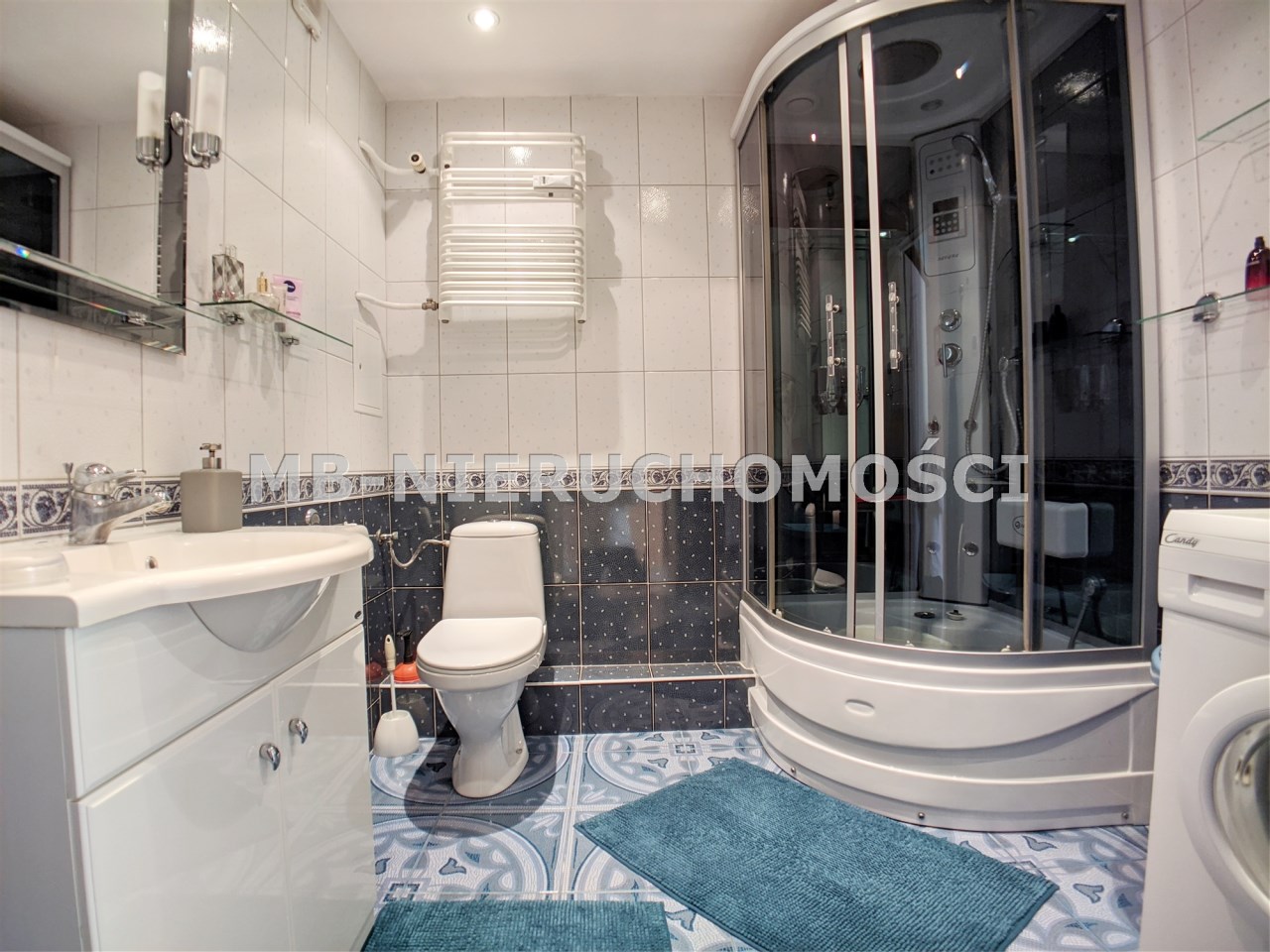 | Wyposażenie łazienki | WC, umywalka, pralka, lustro, kabina prysznicowa |